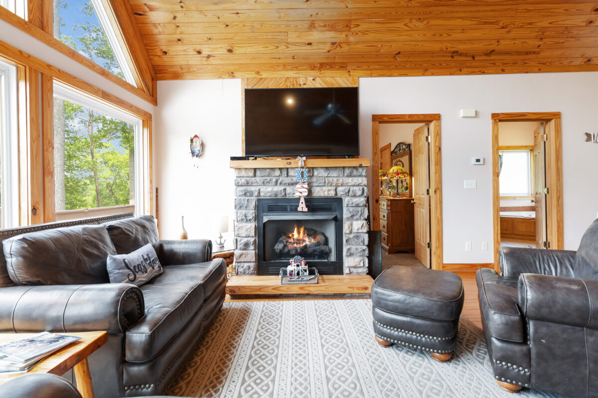 Nestled in the rolling hills near Lake Cumberland State Resort, M&M’s Lake Retreat offers the perfect blend of comfort, style, and outdoor adventure. This charming 4-bedroom, 3-bathroom chalet has plenty of space for your family or friends. The home features hardwood floors, vaulted ceilings, and a cozy gas fireplace. With room to comfortably accommodate up to 11 guests, it is ideal for memorable gatherings. Whether you are planning a family getaway or a trip with friends, M&M’s Lake Retreat delivers an unforgettable experience in a peaceful and scenic setting.
